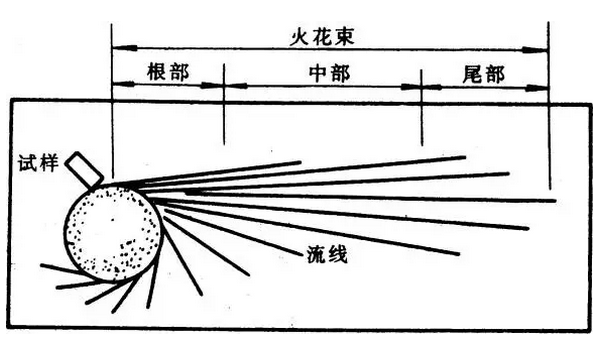 钢铁在砂轮上磨削时产生的火花由根部火花,中部火花和尾部火花构成火花束。高温磨削颗粒形成的线条状轨迹称为流线。